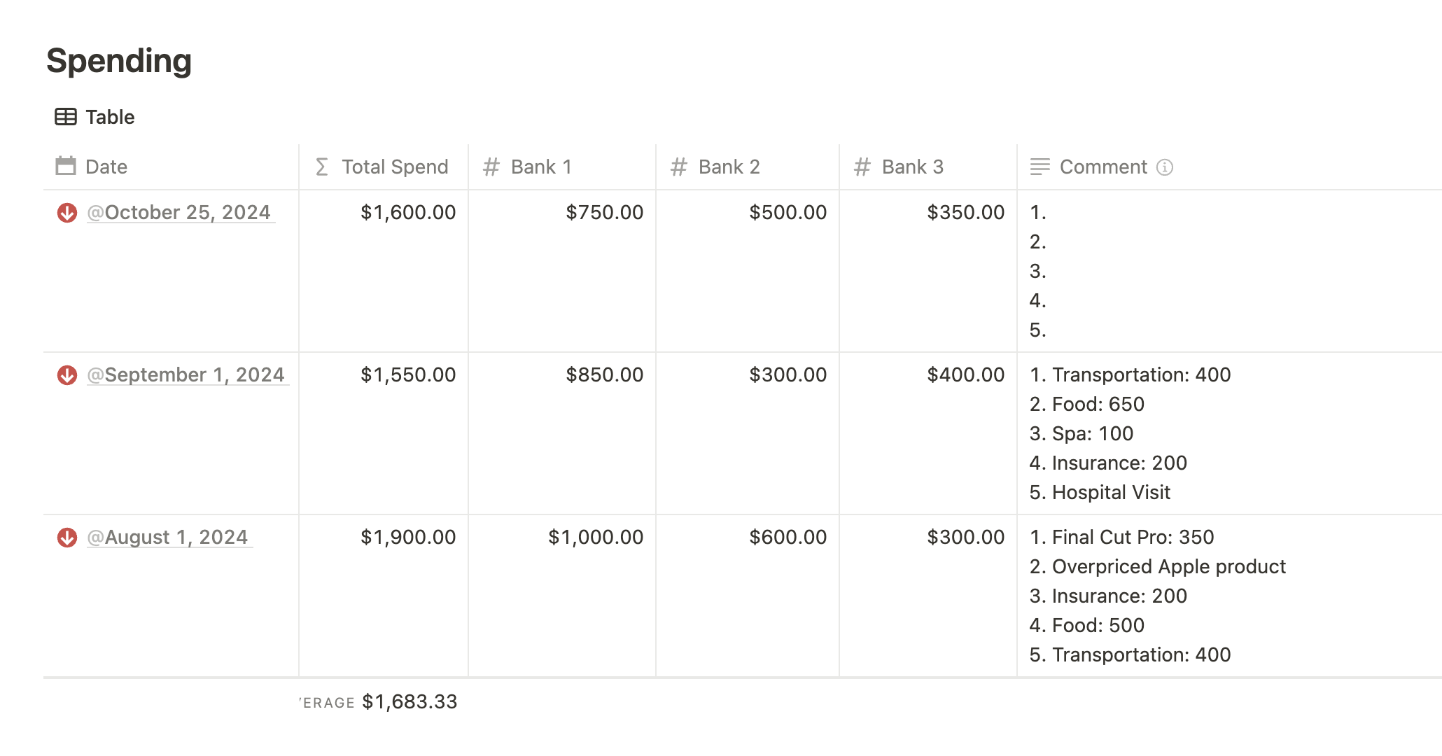 Let's simplify how you track your spending. I use Notion to create a straightforward page listing all my expenses. By categorizing my spending and highlighting the most significant costs each month, I can easily see where my money goes. For instance, if a large portion of my expenses are on Apple products or subscriptions like Final Cut Pro, I can document these amounts.